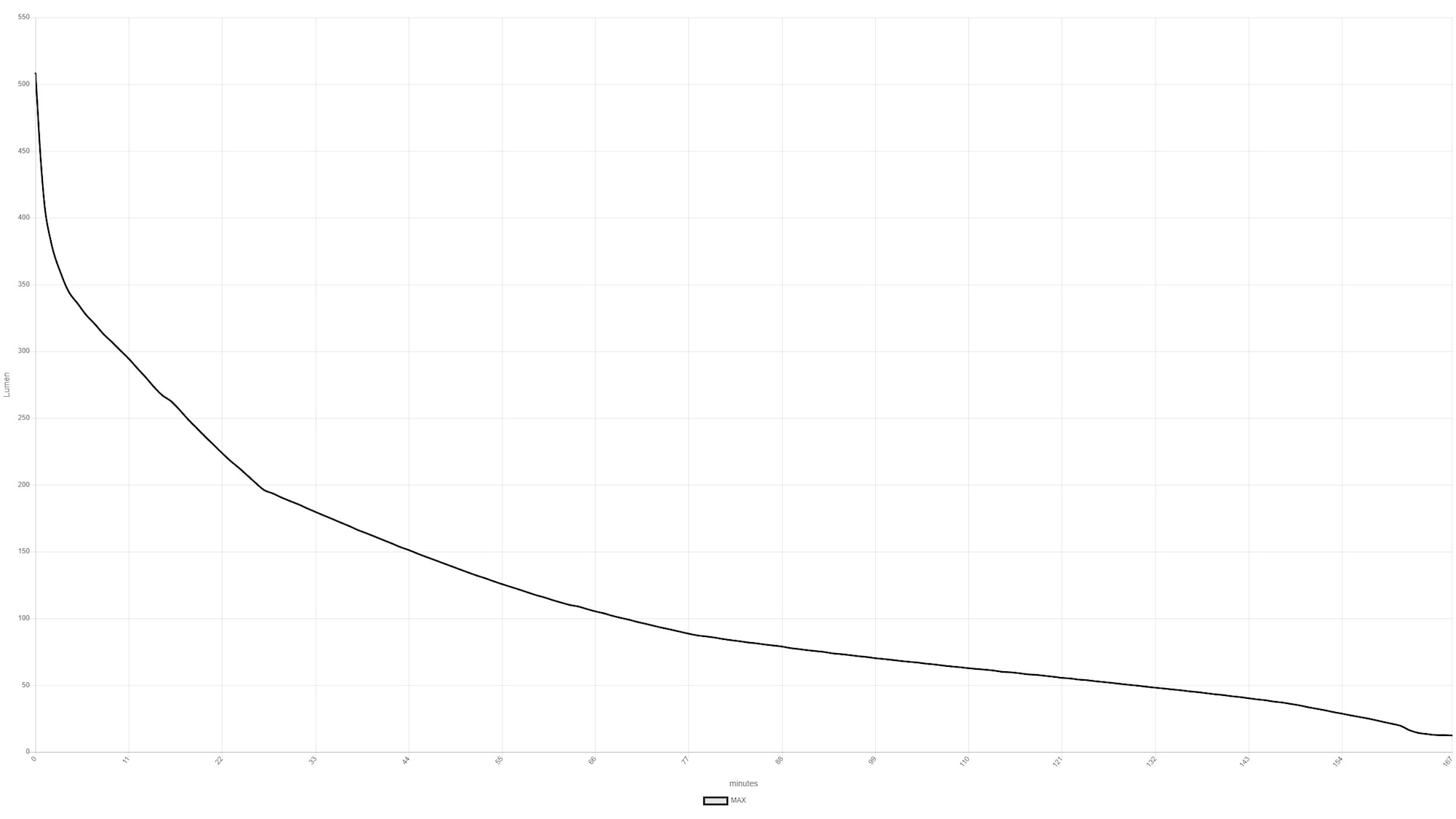 | Ljusflöde | Max: 400 Lumen Dimning: 400-8 Lumen |