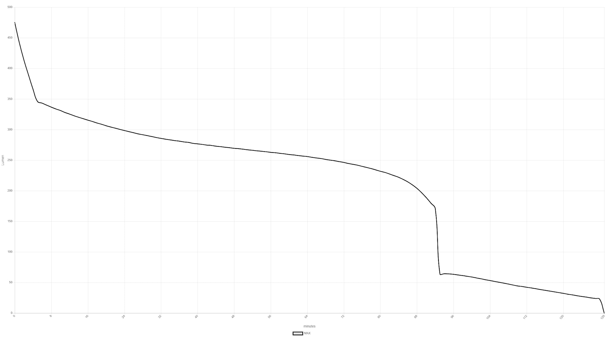 | Ljusflöde | Max: 450 Lumen Standard: 120 Lumen Dimning: 180-6 Lumen |
