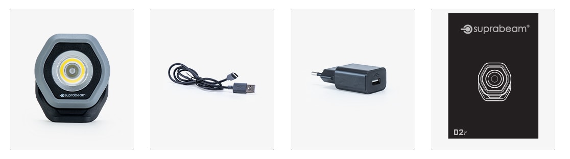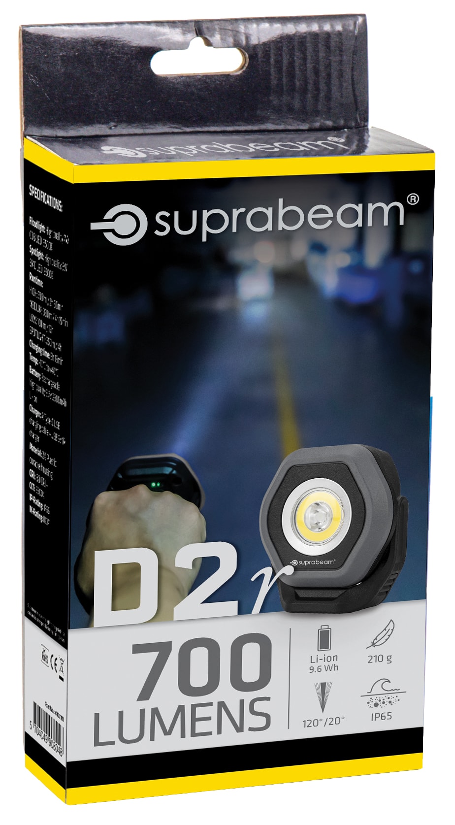 D2r är en kompakt, kraftfull och mycket flexibel arbetsbelysning som ger bra ljus för alla typer av jobb. Tack vare den 180 ° justerbara foten kan ljuset justeras i alla riktningar. Den magnetiska foten gör att lampan står stadigt på egen hand eller vid montering på en magnetisk yta. Tack vare den kompakta sexkantiga designen transporteras D2r enkelt från jobb till jobb. D2r har brett flodljus med tre ljusstyrkor och en kraftfull punktbelysning för inspektionsjobb. Ljuset har ett RA-värde på +80 och framhäver färger mycket exakt, vilket gör många jobb mycket enklare. Batteristatus visas i display på baksidan av lampan och batteriet laddas med en USB C-kabel.