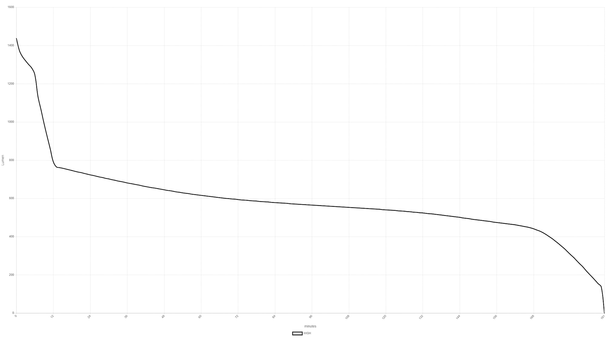 | Ljusflöde | High: 1400 Lumen Medium: 900 Lumen Low: 450 Lumen Spotlight: 400 Lumen |