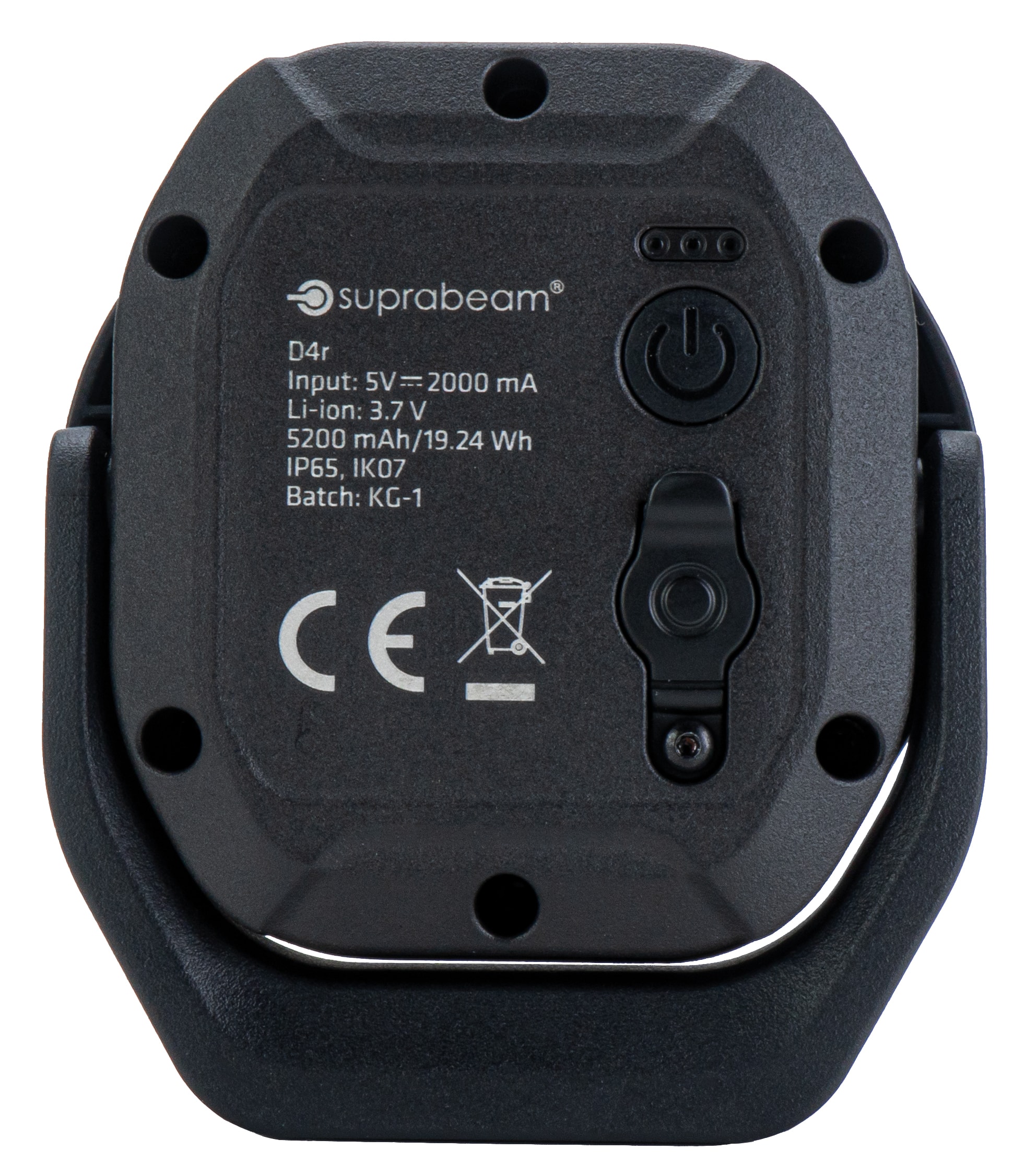 Något större än sin lillebror D2r och ger den dubbla ljusstyrkan. Med 1400 lumen finns det tillräckligt med ljus för att lysa upp de flesta uppdrag, samtidigt som det är en mycket kompakt arbetsbelysning som lätt kan transporteras från jobb till jobb eller monteras i verktygslådan. Tack vare den 180 ° justerbara foten kan ljuset justeras i alla riktningar, och med den magnetiska foten står den stadigt på egen hand eller monterad på en magnetisk yta. D4r har brett flodljus med tre ljusstyrkor och en kraftfull punktbelysning för inspektionsjobb. Ljuset har ett RA-värde på +80 och framhäver färger mycket exakt, vilket gör många jobb mycket enklare. Batteristatus visas i display på baksidan av lampan och batteriet laddas med en USB C-kabel.