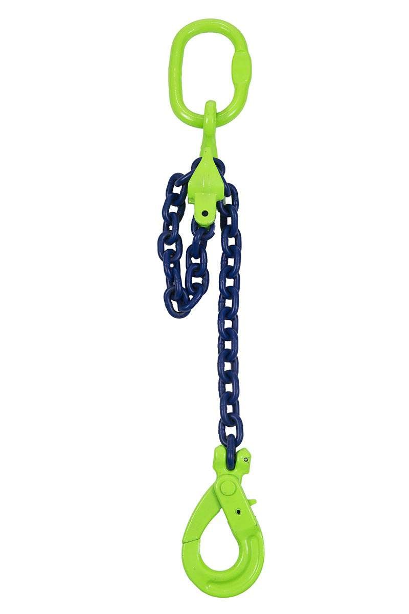 1-part lyftredskap med förkortningskrok och säkerhetskrok. Förkortningskroken är integrerad och frilöpande på lyftöglan.