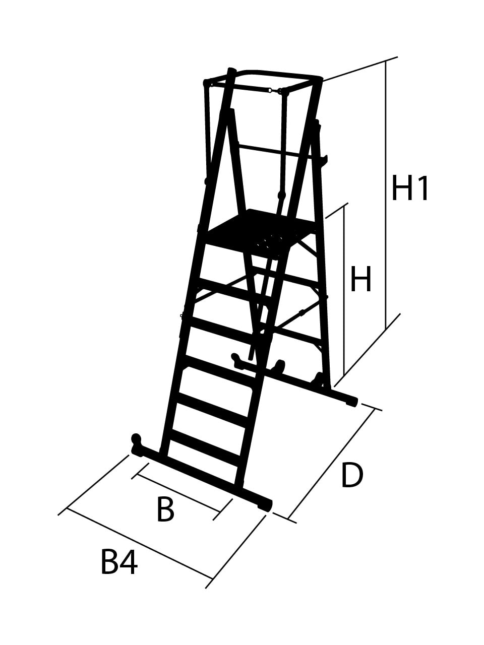 - Handledare och 50 mm djupa fotsteg för säker och bekväm klättring.