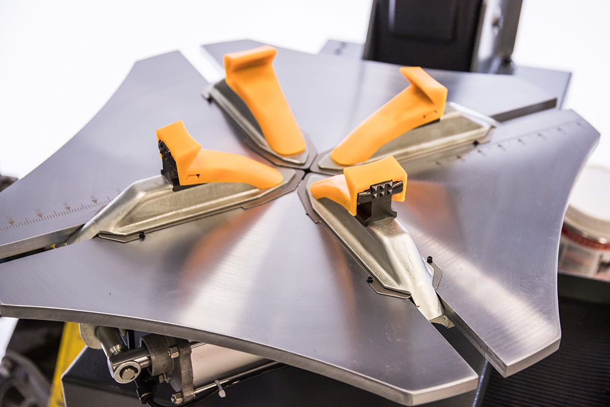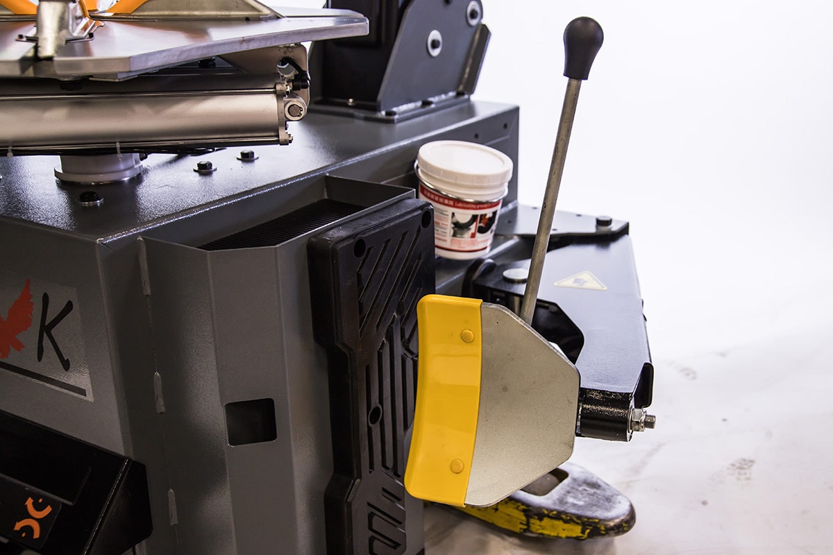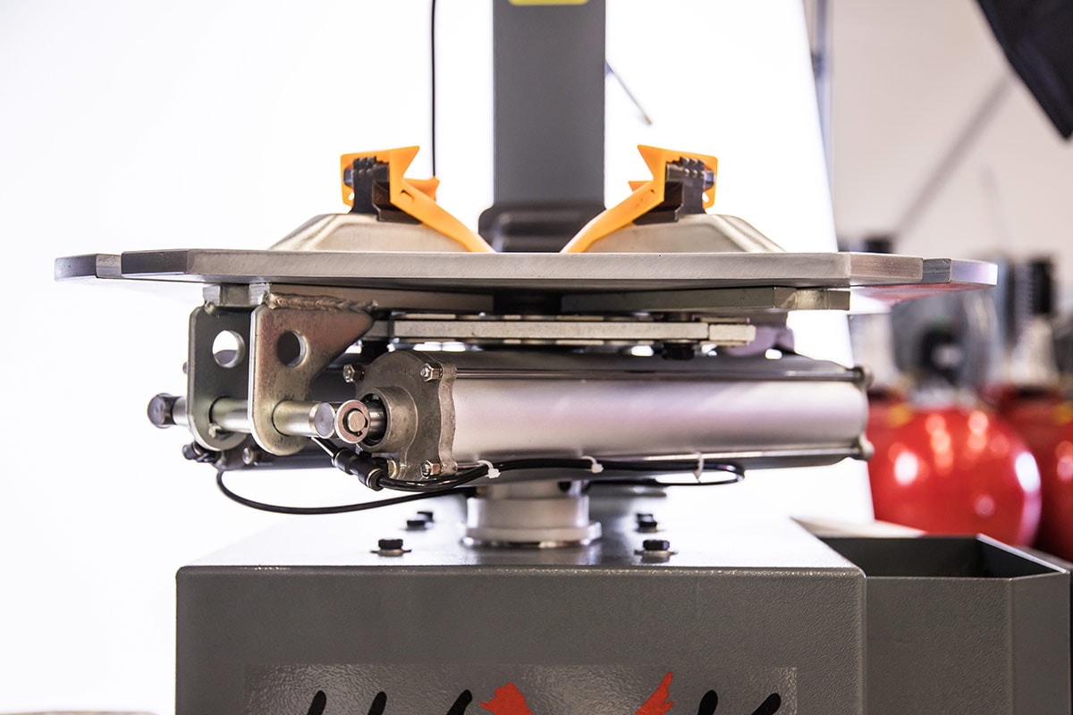 Däckmaskin för 11-24" fälgar med max däckdiameter 1200 mm med roterade bord och förstärkt pelare för att klara däck upp till 24".