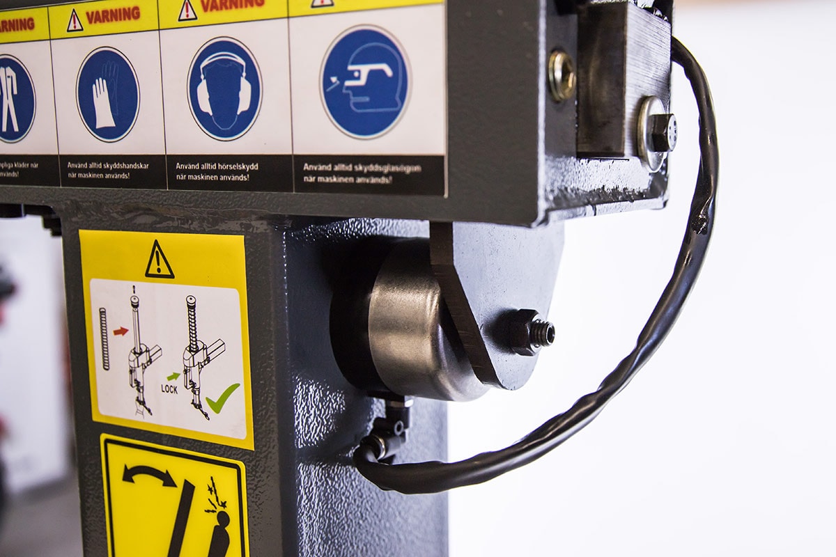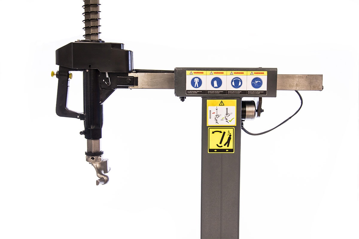 - Denna däckmaskin har pneumatiskt tiltningsbar pelare och vertikal samt horisontal arm kan låsas pneumatiskt.