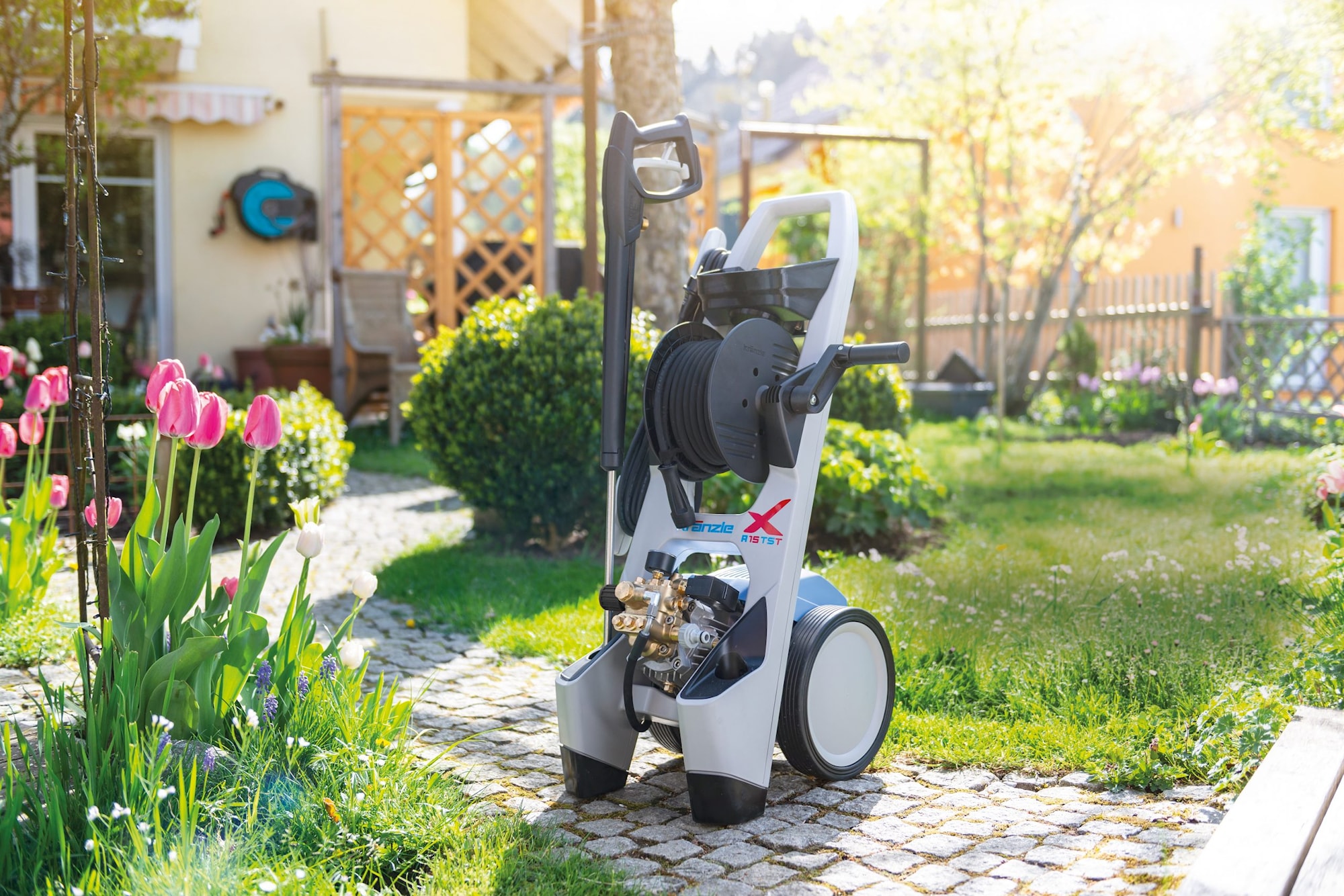 • Tack vare X-formen kan högtryckstvätten användas bekvämt i upprätt läge.