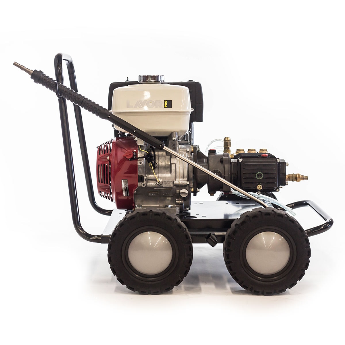 Bensindriven högtryckstvätt för rengöringsuppgifter där dui vill vara oberoende av elektricitet. Försedd med bensindriven Hondamotor GX orginal. Mässingspump och keramikbelagda stålkolvar (tre styck) samt inbyggd överströmningsventil. Sug- och tryckventiler i rostfritt stål. Max tilloppstemperatur 40 °C. Vagn med ergonomiskt handtag och lanshållare. Anordning för kemikalieinblandning med extern sugsond. Tryckreglage och glycerinfylld manometer. Levereras med högtryckspistol, högtryckslans och 10 meter högtrycksslang.