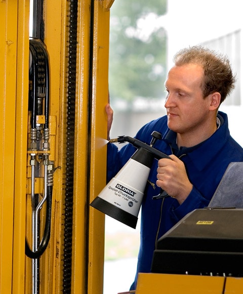 Gloriatrycksprutor tål de flesta medel, men ej klor, svavelsyra eller saltsyra. Ämnen inom surhetsområdet PH-värde < 5 samt lösningsmedel och starkt frätande ämnen får ej fyllas i behållaren.