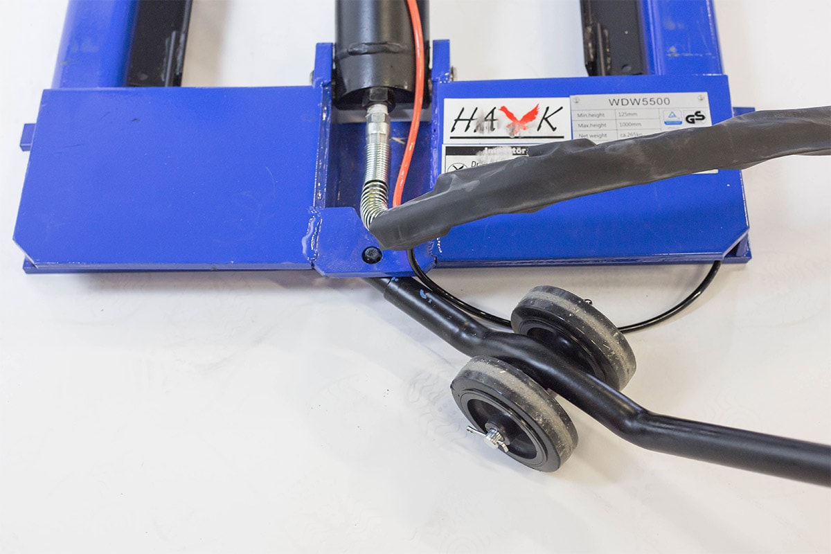 Denna billyft är perfekt som servicelyft vid reparationsarbeten, däckbyte och liknande. Observera att en kompressor krävs för att använda denna billyft.