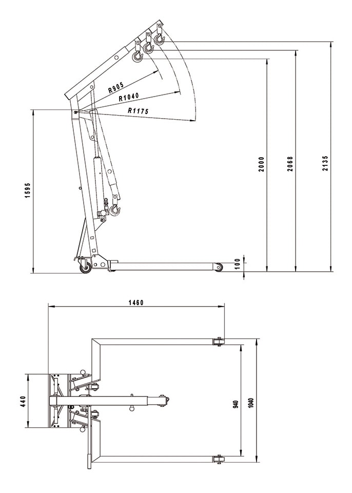 - Hopfällbar med en lyftarm som kan ställas in i 3 fasta positioner: 600, 400 och 200 kg