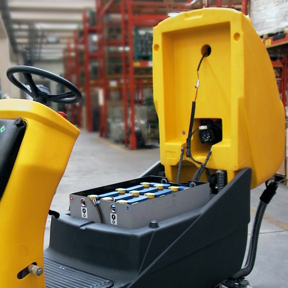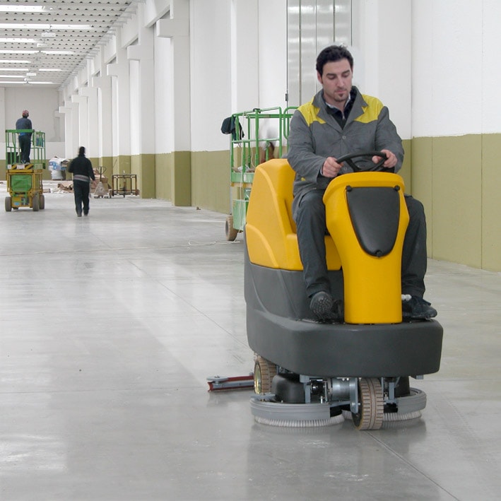 SCL Comfort S-R 82 är en åkbar skurmaskin med batteridrift i kompakt och stabil design.
