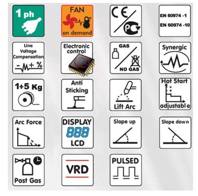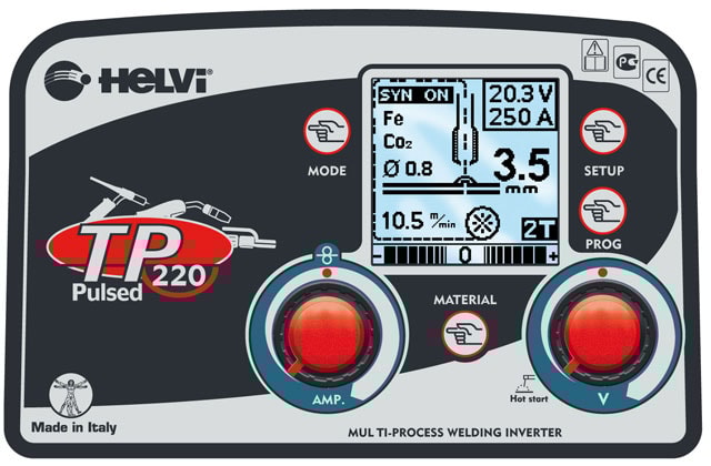 I MMA- läget styr mikroprocessorn Hot Start, Arc Force och Anti-Sticking-funktionerna. I Tig-läget styr den Lift Arc-funktionen (TP 220 är utrustad med TIG-) och i Mig-läge tillåter man antingen manuell, helt synergisk svetsning eller pulserande läge. Reglering av lutningsmotorn, automatisk styrning av mjukstartad matning av bågen. Alla funktionerna kan enkelt väljas på frontpanelen.