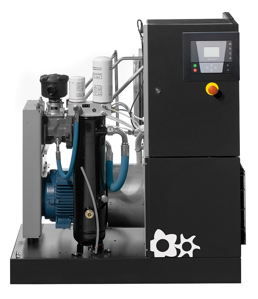 Maskinen har även en ljudlös dränering som endast dränerar bort kondensvattnet och ingen luft som en konventionell dräneringsventil. Invändigt i skruvkompressorn sitter det även monterat ett partikelfilter för krävande pneumatiska applikationer som filtrerar bort partiklar upp till 0,1 micron.