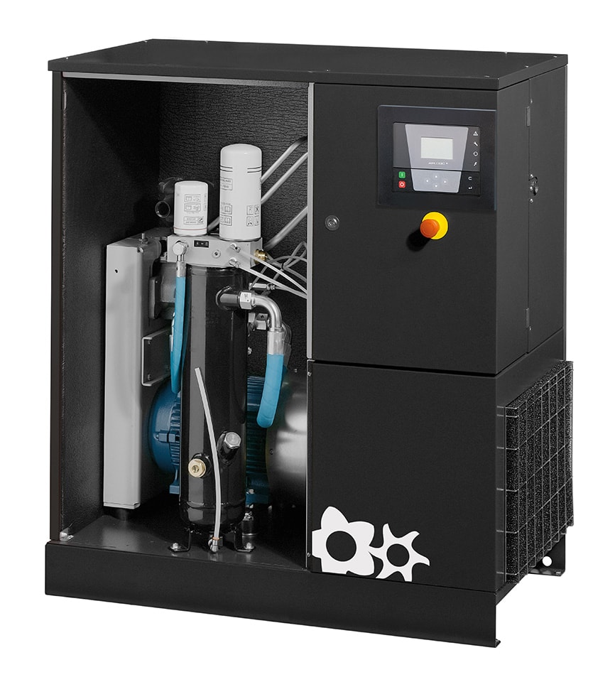 Skruvkompressorn är utrustad med en avancerad inverterteknologi som varierar varvtalet på kompressorn för att spara så mycket energi som möjligt samt förlänga livslängden på kompressorn.