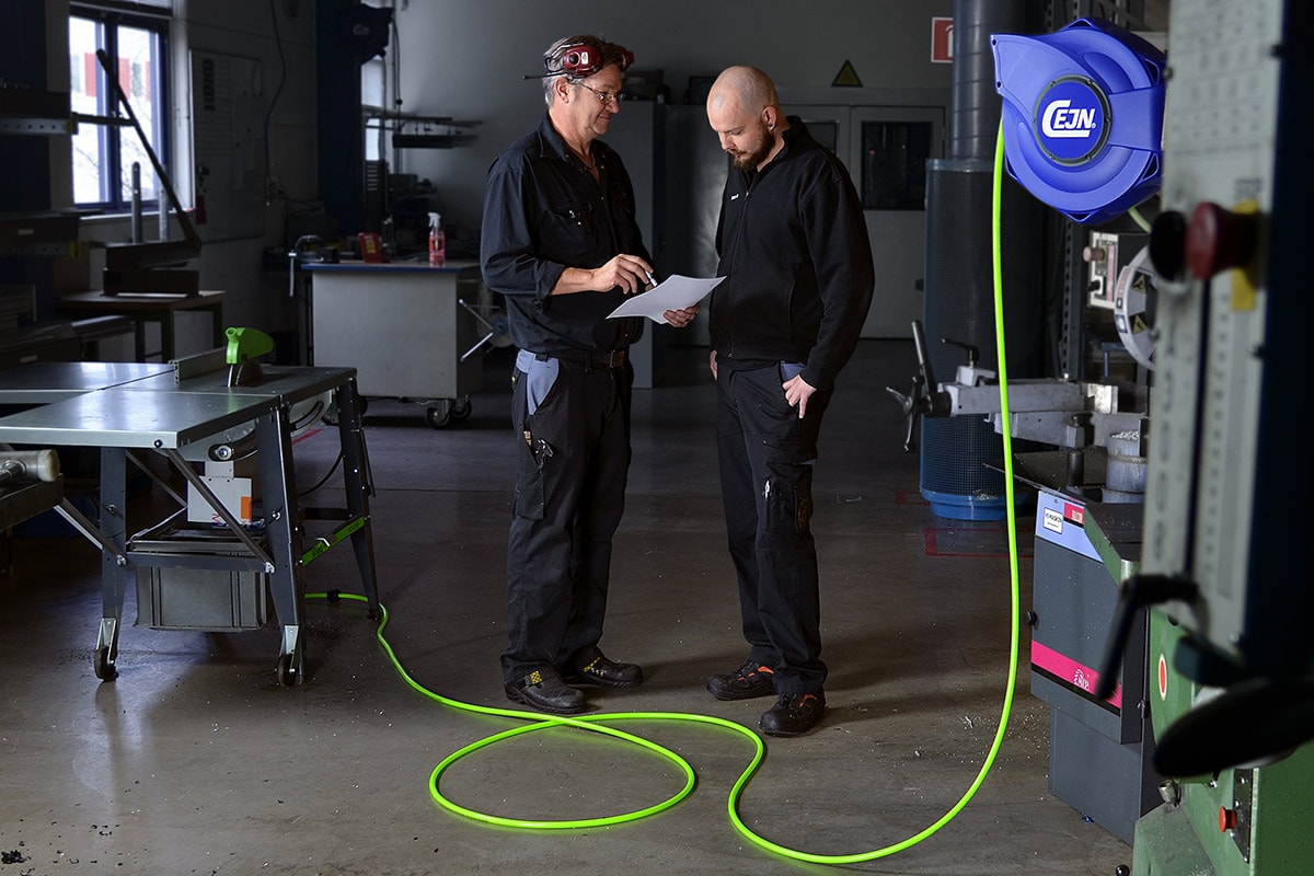 Med CEJNs slangvindor får du utmärkt prestanda tack vare den patenterade designen som, till skillnad från de flesta rullar, inte begränsar flödet. Detta resulterar i bättre verktygsprestanda, vilket sparar både tid och energi. Slangvindan är idealisk för en säker arbetsplats. Säkerhetsfunktioner som den långsamma slanginrullningen, slangstyrning, PUR-slang, mjuk stoppkula som minimerar fallrisk och vikskydd är bara några exempel på vad som gör dessa slangrullar bäst på marknaden. Vindorna kan vridas 180 grader så att operatören kan röra sig fritt, och den långsamma slangupprullningen gör det säkert och enkelt för alla att hantera. Behöver en slang bytas kan detta enkelt göras tack vare den smarta designen.