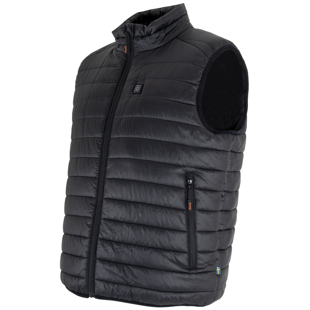 Bekväm batteridriven värmeväst med krage och extra vaddering. Med inbyggda värmeslingor över skuldrorna och i ryggslutet. Västen har ett tunt högisolerande foder med reflektion som maximerar värmeelementens förmåga att leda värme till din kropp. Modellen på västen gör så att du får en bra passform samt att värmeelementen kommer så nära kroppen som möjligt. Passar sig ypperligt för olika vinteraktiviteter där du vill ha lite extra värme!