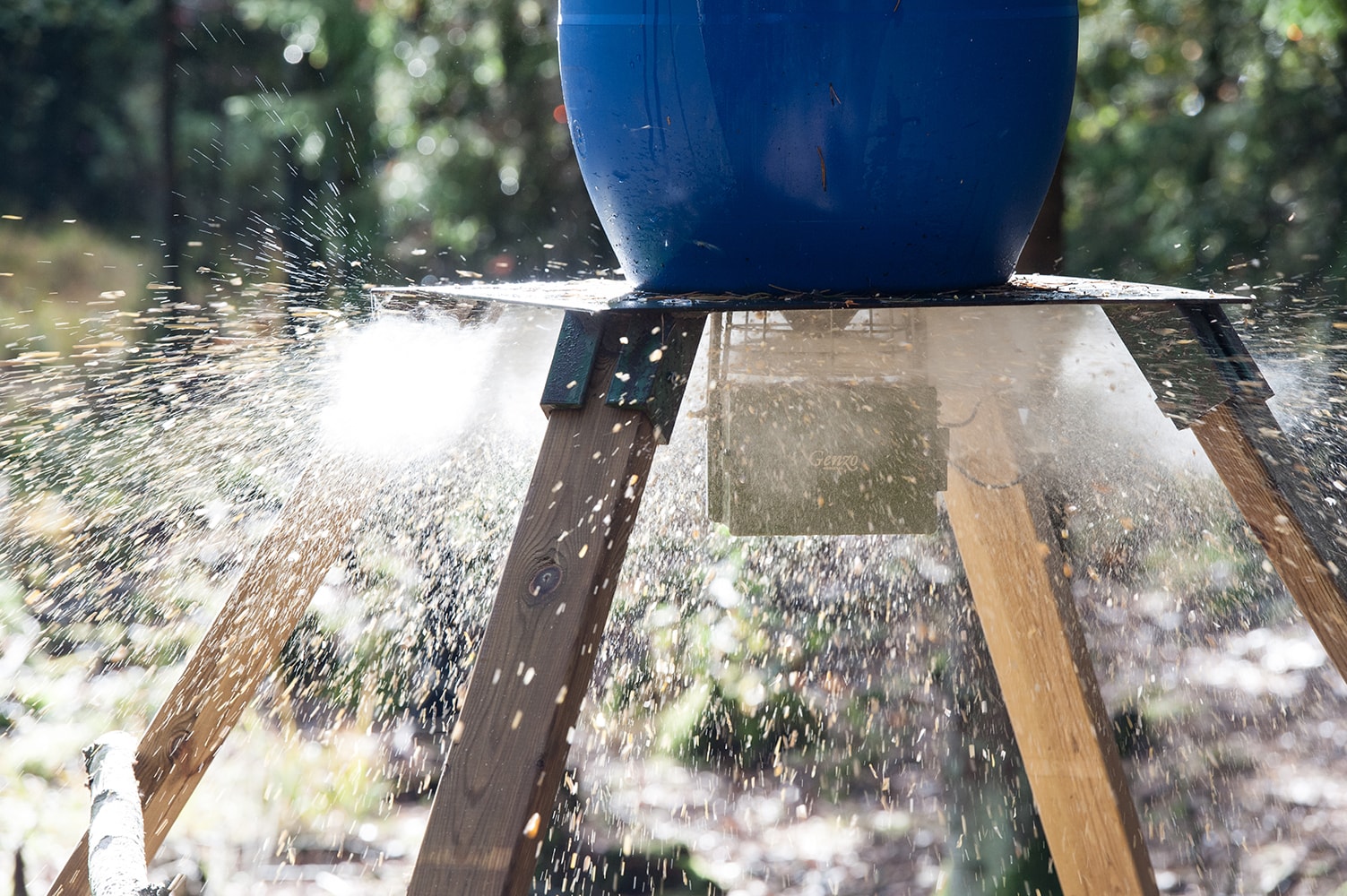 Ställbar motoreffekt. Spridaren fästes enkelt i valfri tunna, i tunnan skruvar du fast den medföljande konan som gör att fodret träffar spridarrotorn rätt och att inget spill uppkommer.