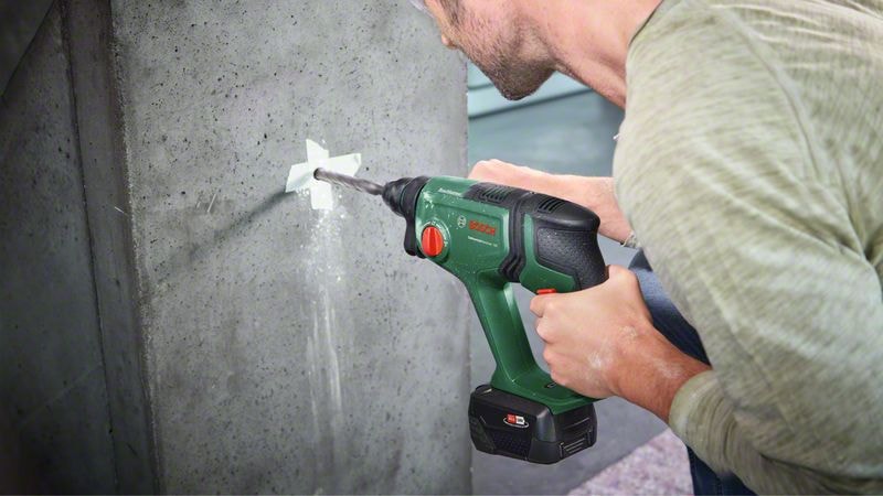 Detta sladdlösa kraftpaket gör det roligt att borra igen tack vare sin kombination av kraftfull slagmekanism, lätthet och flexibilitet. Den driver en 2,0 J pneumatisk hammarmekanism från Bosch som är perfekt för borrning av hål på upp till ∅ 16 mm i betong med en SDS plus-borrbit. Denna imponerande kraft klarar även kakel och kabelrännor. Gör-det-självare kommer att uppskatta den lätta, kompakta hammarstorleken som gör arbetet mindre uttröttande. Och med vibrations- och rotationskontroll skakar verktyget mindre och är mer stabilt.