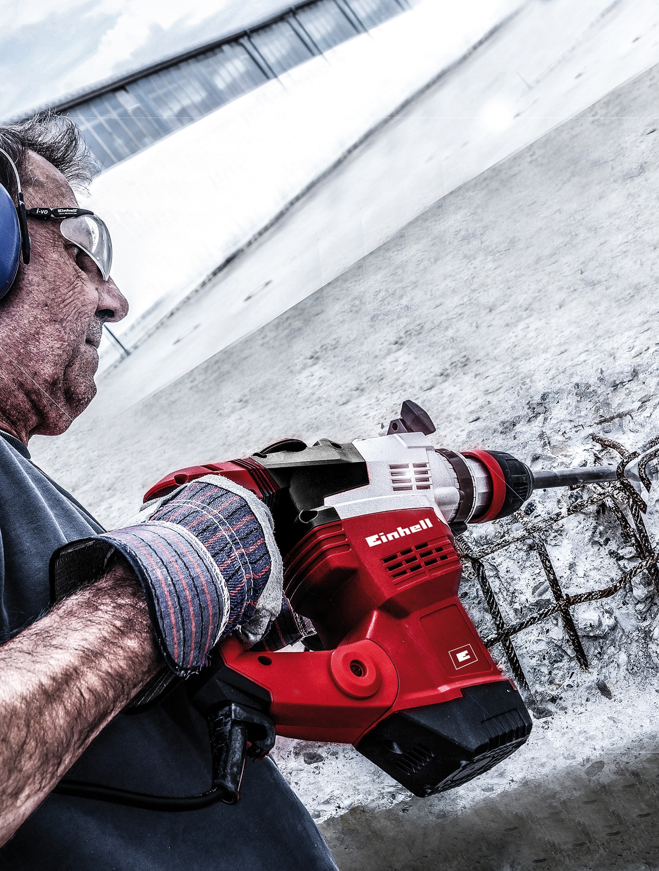 Den roterande borrhammaren TE-RH 38 E med tryckluftshammarmekanism för expertbruk är ett högkvalitativt och extremt mångsidigt kraftpaket, oumbärligt för utmanande byggnads-, renoverings- och mejslingsjobb. Med borrhammare och mejsling med och utan mejselfixering är denna universalmaskin utrustad med de tre funktionerna för universell användning.