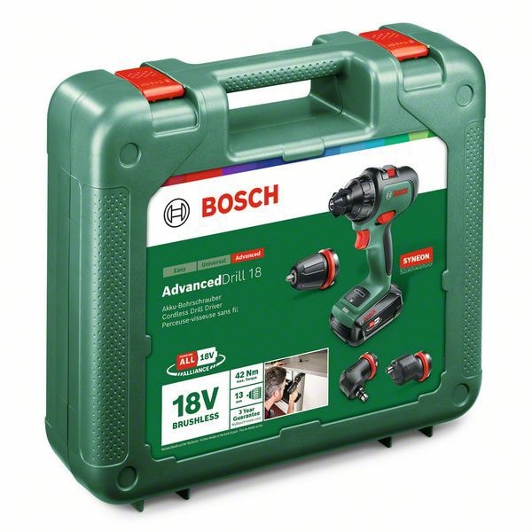 Denna sladdlösa borrskruvdragare är mycket intuitiv och mycket mångsidig. Det är enkelt att välja önskad användningstyp och rotationsriktningen kan ändras med ett klick med det innovativa elektroniska brytarsystemet med LED-indikator. Den borstlösa motorn levererar effekt, kompakthet och uthållighet. Det inkluderar QuickSnap excenter- och vinkeltillbehör för svåråtkomliga ställen, samtidigt som det magnetiska locket och 13 mm-chucken ger enkla byten mellan borrning och skruvdragning. AdvancedDrill 18 tacklar många olika typer av jobb i trä, plast och metall. Verktyget ingår i POWER FOR ALL ALLIANCE. Ett batteri kan användas i en stor mängd verktyg från olika märken.