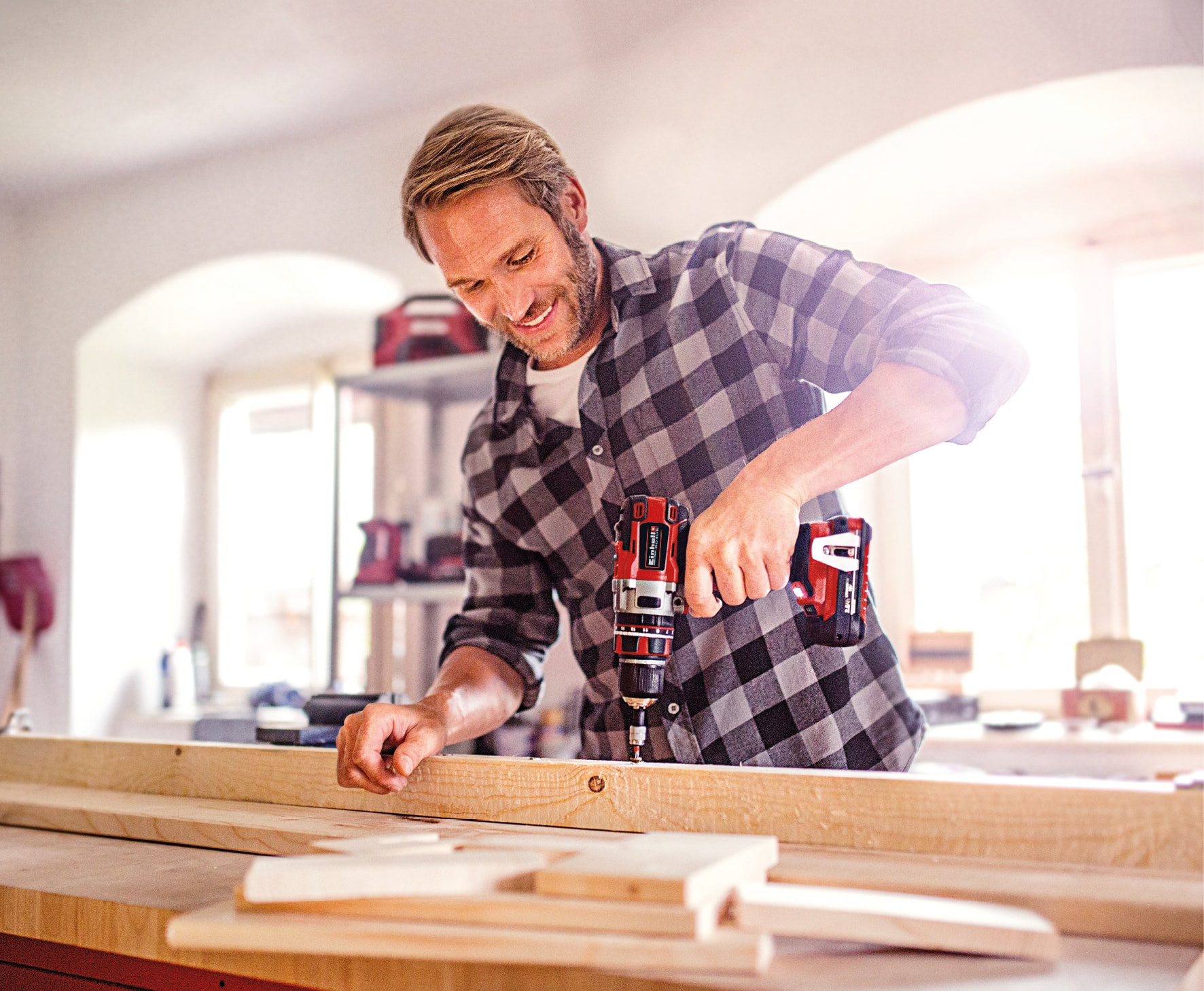 Den sladdlösa borrmaskinen TE-CW 18 Li BL-solo från Einhell med borstlös motor ger mer kraft och går längre än verktyg med konventionella kolborstmotorer. Två 2 Ah PXC Power X-Change-litiumjonbatterier och en snabbladdare ingår. Borrmaskinen levereras i ett praktiskt transport- och förvaringscase.