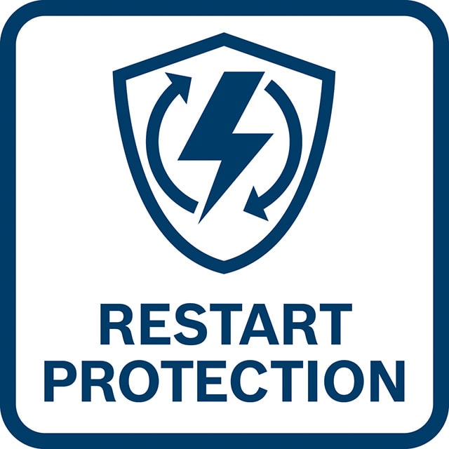 - Förhindrar självständig omstart av verktyget efter strömavbrott. Endast genom ny, medveten start kommer verktyget att vara redo att användas