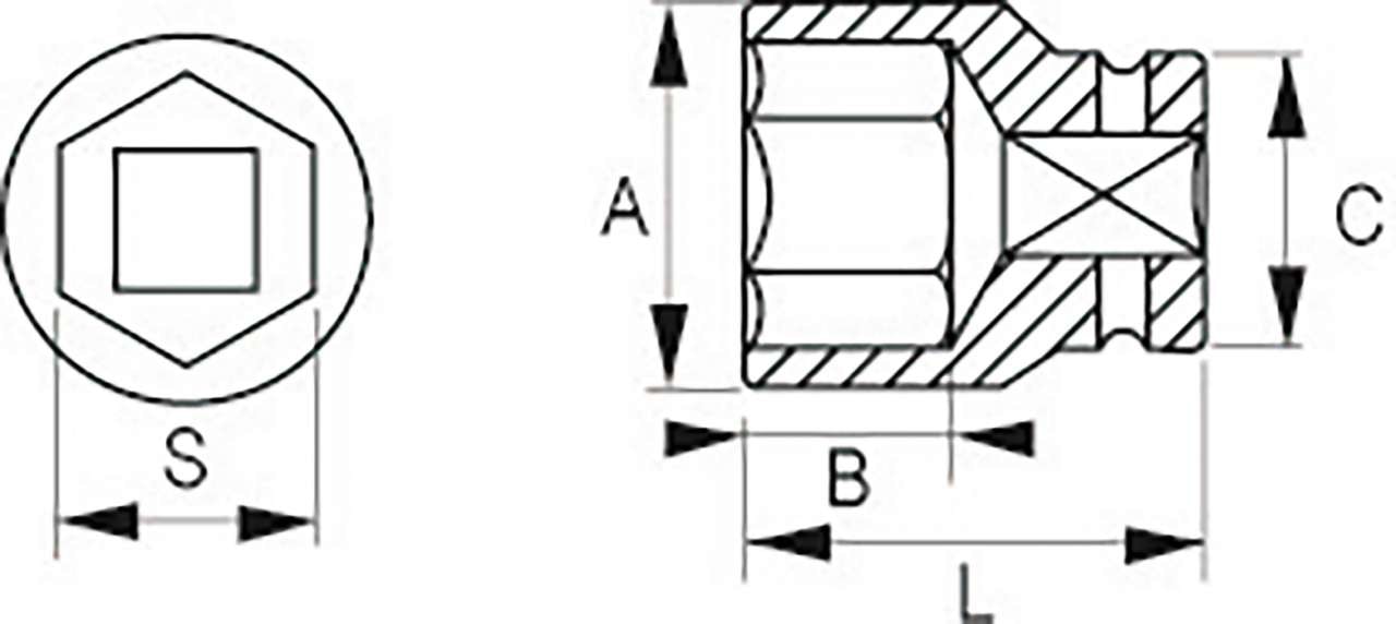 - Hylsa 1/4", tum. Av kromvanadinstål