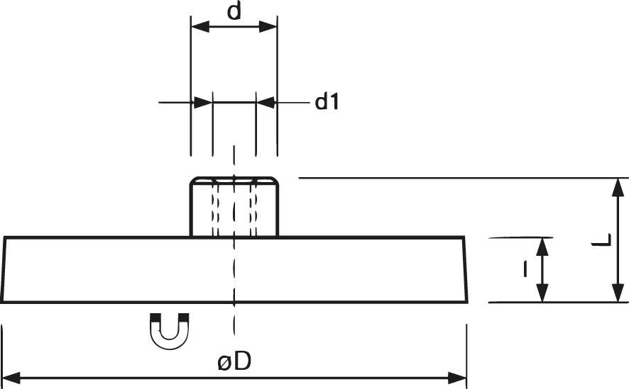 Design: Tillverkad av neodym med neoprenskydd och gängad bussning. Rekommenderad maxtemperatur är 80 °C. Extremt starkt hållkraft i förhållande till storleken.