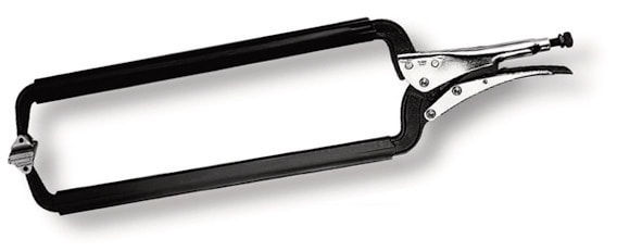 - Svetstång med C-format käftparti med rörliga gripskor som justerar sig parallellt till arbetsstycket