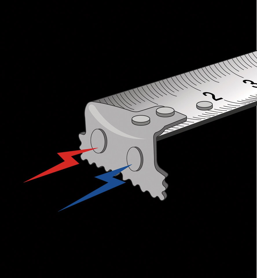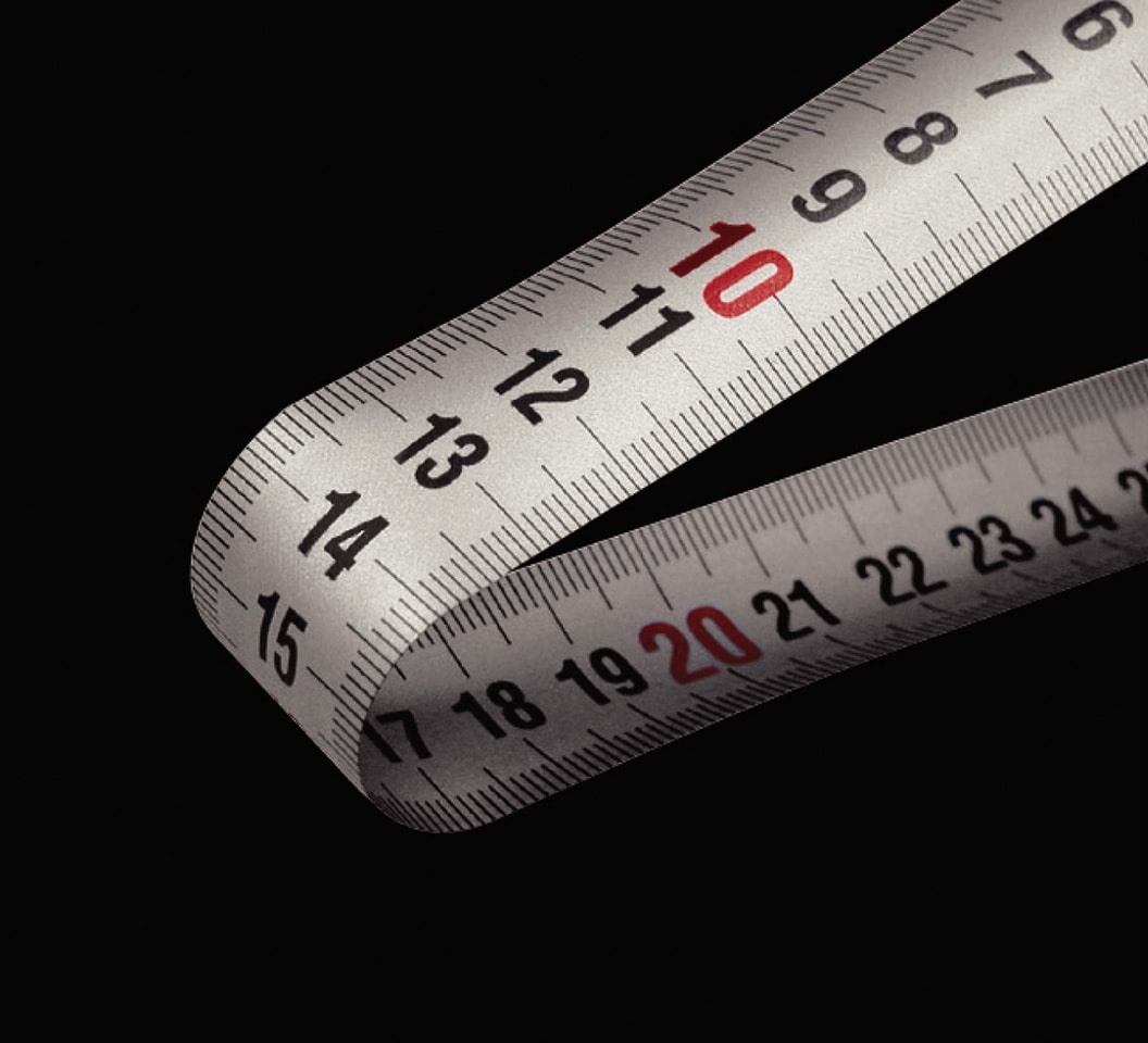 - Måttband klass I med permanent tryckt måttskala med hög kontrast på båda sidor