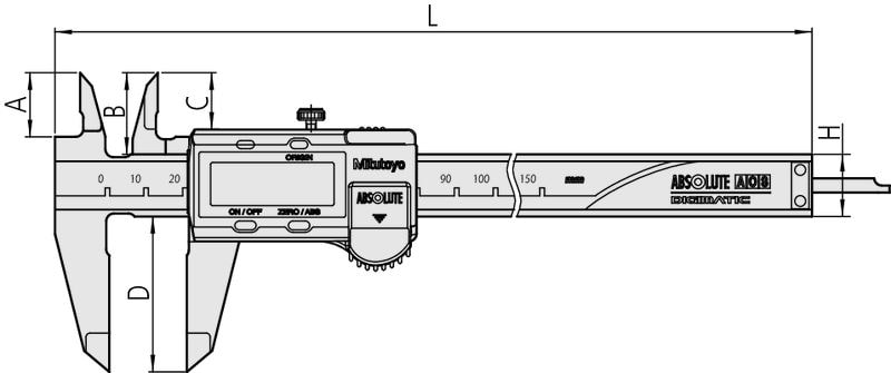 - Tack vare användandet av en ABS avläsare av elektromagnetisk induktionstyp kan dessa skjutmått användas även där skalans yta riskeras att smutsas ner under mätningen. Avläsningssignalen påverkas inte av smuts (vatten, olja, etc.) på skalans yta. Ej IP-klassat.
