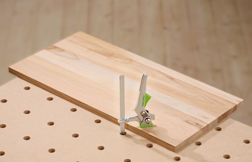 Bord med hålplatta och fällbara ben, ledbart rälsanslag, fast rälsanslag, vinkelanslag, anslagsryttare, styrskena FS 1080/2, avvisare FS-AW, extra klämma