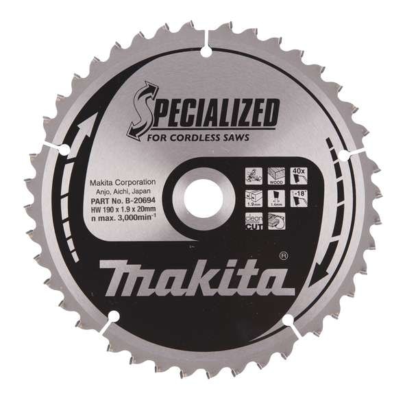 Hem / Maskintillbehör & förbrukning / Skärande verktyg / Sågklingor / Makita Sågklinga B-20694 190x20x1,9mm 40T HM