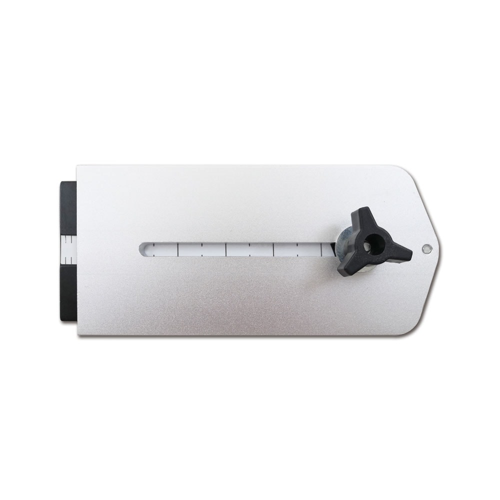 - Tillverkad av kraftig aluminium låser jiggen säkert i de flesta 3/4" W x 3/8" H falskantsguide-spår medan en inbyggd skala hjälper dig göra finjusteringar.