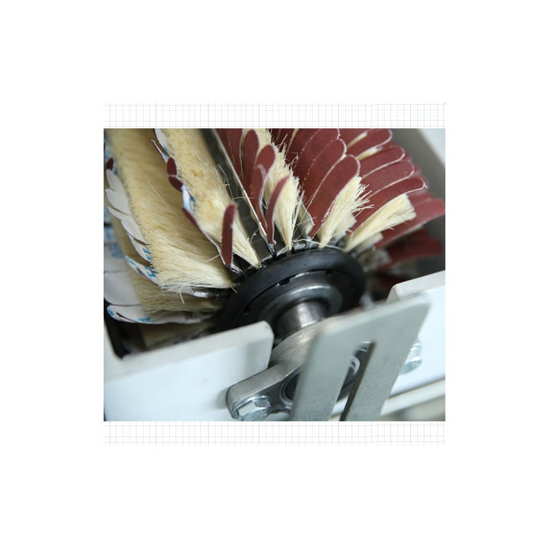 Det är en icke-aggressiv metod för slipning som inte skär av träfibrerna, vilket ger en enhetlig yta på träet. Detta har många fördelar när det gäller att applicera en slutfinish. Finishen kan tränga in jämnare i ytan, särskilt på kanterna, vilket förbättrar träets struktur. Borttagning av små ojämnheter görs effektivt innan finishen appliceras. Denna process kan spara upp till 50% i förbrukning, för att inte tala om den sparade tiden. Slutresultatets enhetlighet är mycket bättre än vad som kan uppnås med andra slipmetoder. Särskilt lämplig för profilerade trädetaljer samt platta paneler. Detta huvud kan även användas för att skapa en strukturfinish på metaller, ta bort oxidering eller brytarburrar. Som standard levereras huvudet med slipmaterial med kornstorlek 240, men slipmaterial med kornstorlekar upp till 320 finns tillgängliga.