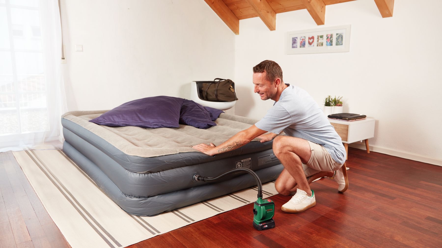 Bekväm uppblåsning: kompakt, sladdlös luftpump för stora, uppblåsbara föremål.