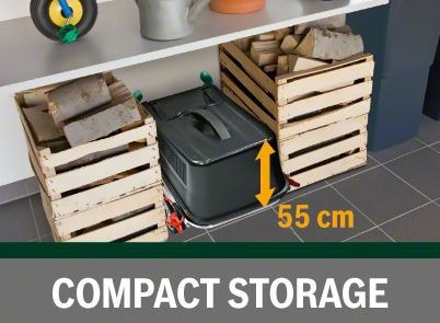 - Dubbelt ihopfällbar balk och stapelbar gräsuppsamlare sparar plats