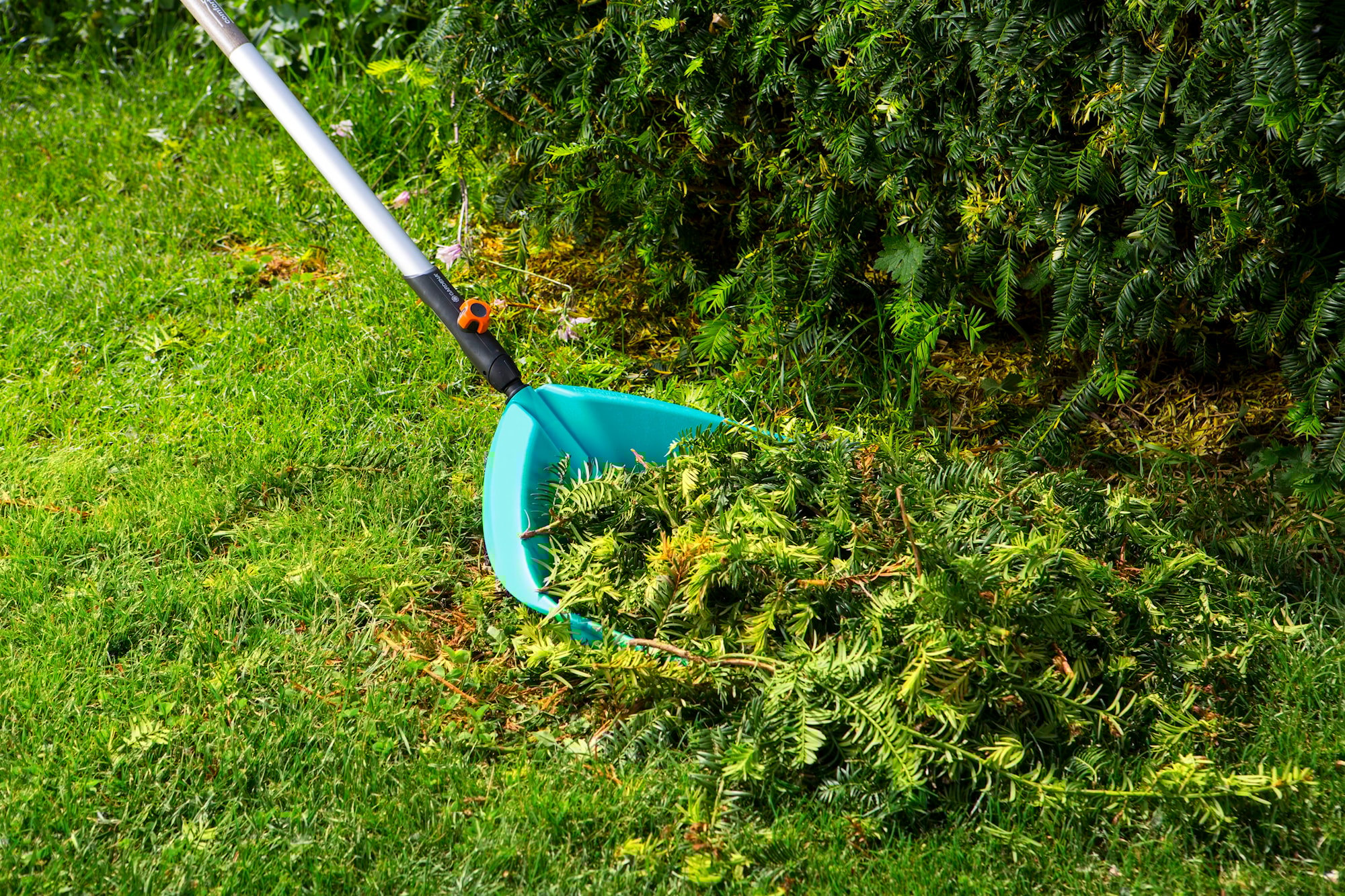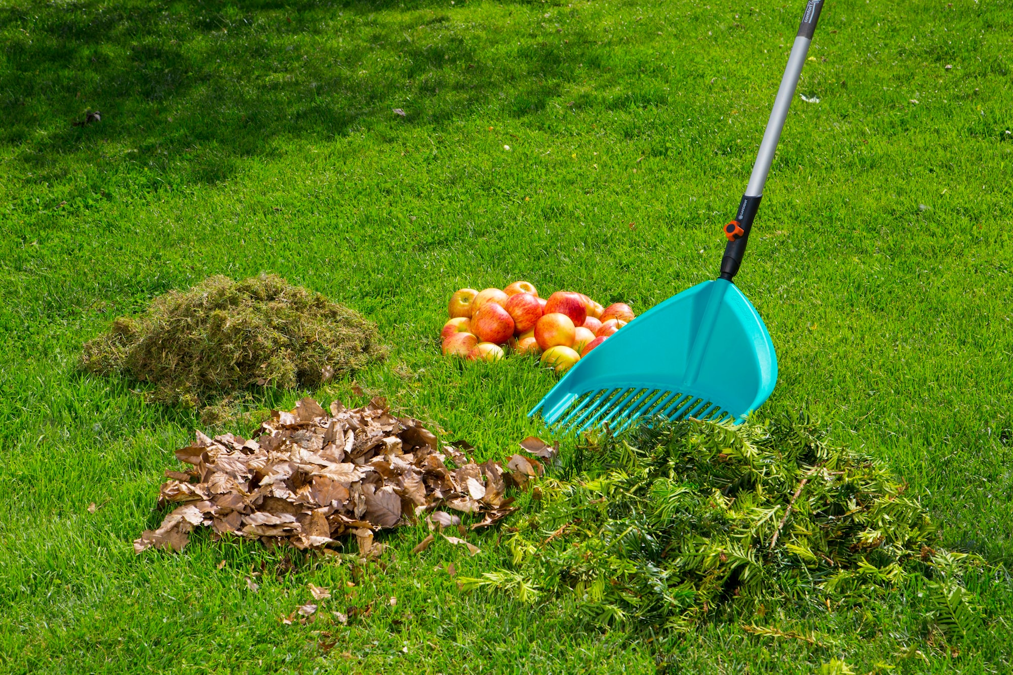 Använd skyffelräfsan som mångsidigt verktyg och sopa ihop och plocka upp olika material, exempelvis gräs, häckklipprester, klipprester, jord och löv. Med sållfunktionen kan du filtrera jord.