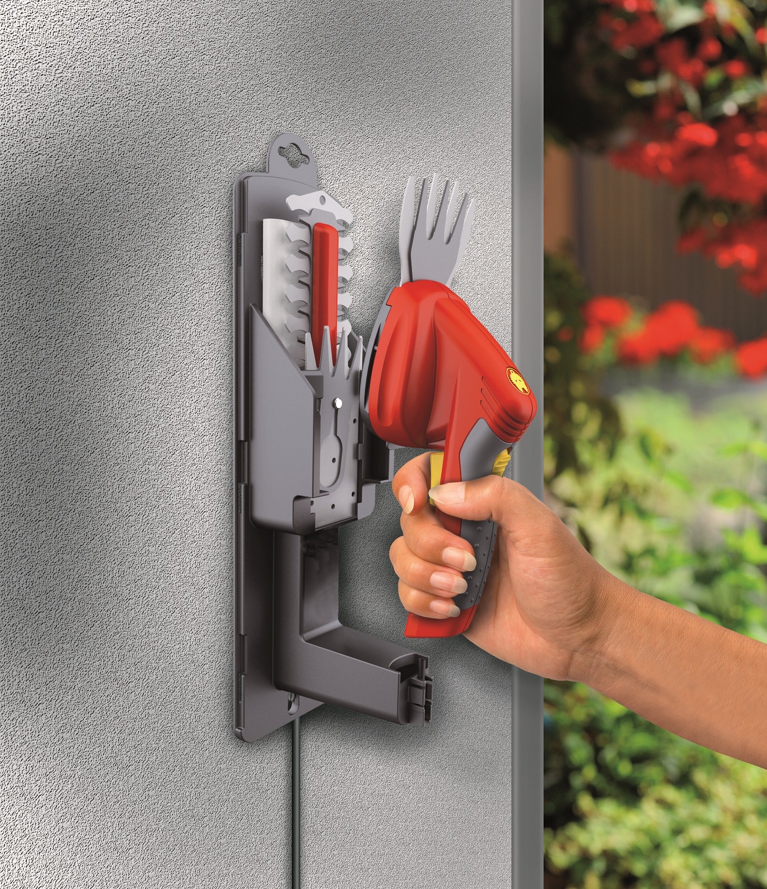 Batterigrässaxen Finesse 50 är liten och perfekt formad för att komma åt över allt. Med ett kraftfullt batteri på 1,6 Ah får man en driftstid på 50 min för att klippa kantgräs eller fintrimma små buskar.