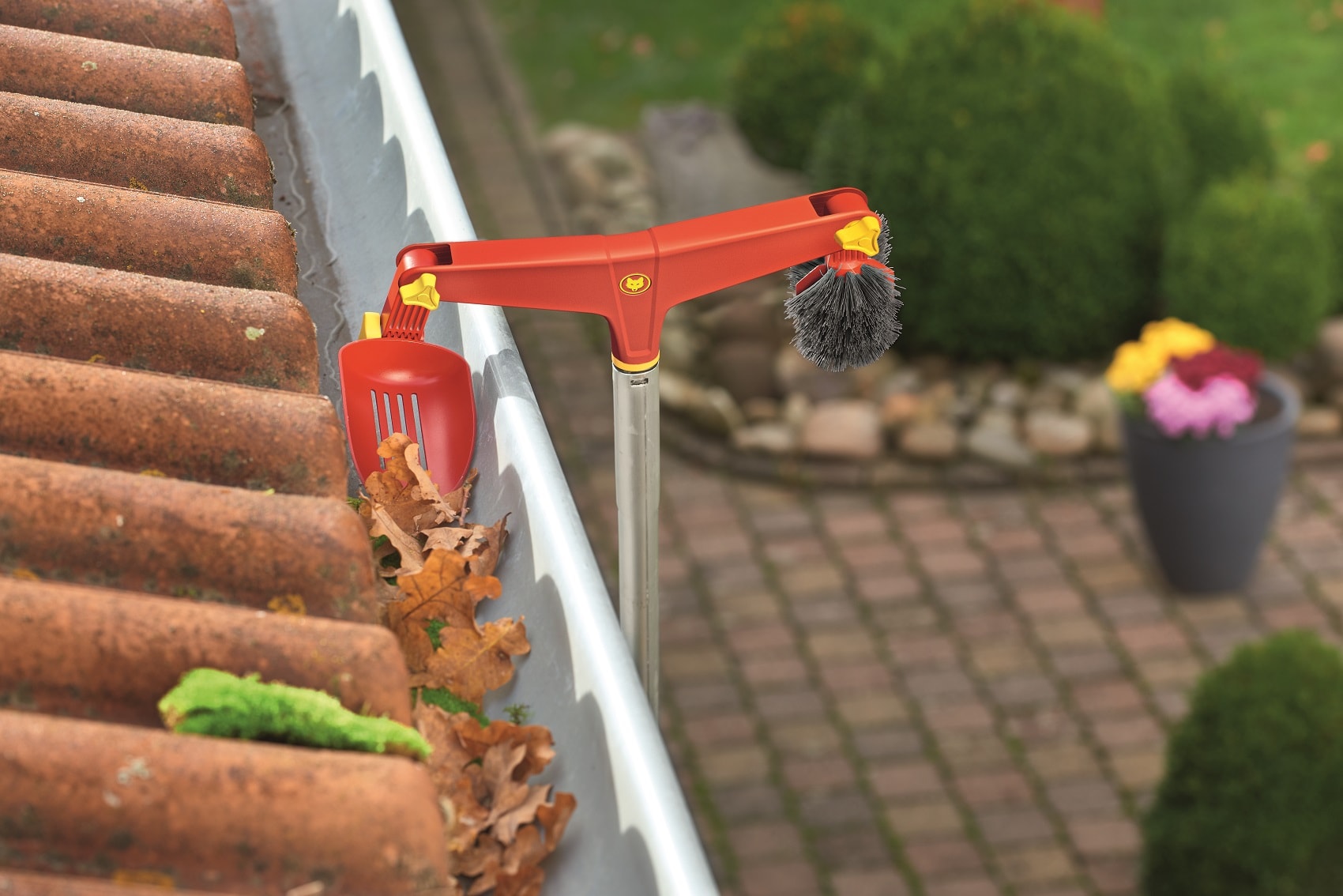 WOLF-Garten multi-star® GC-M Rensborste för hängrännor. Stå på marken och göra ren hängrännorna underlättar det annars riskabla jobbet på stege.
